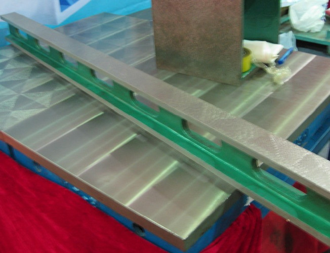 鑄鐵平尺的材質采用細密的灰口鑄鐵或合金鑄鐵等材料按JB/T7977-99標準制造,常規加工方法采用機械加工和人工刮研工藝,也可以手工研磨。常規鑄鐵平尺有兩個工作面,工作面采用刮研工藝,使測量的精度更高,平行平尺的工作面不能有嚴重影響外觀和使用性能的砂孔、氣孔、裂紋、夾渣、縮松、劃痕、碰傷、銹點等缺陷,否則會使測量失真。平行平尺的使用檢測時,由它的兩個工作面配合水平儀,千分尺等輔助測量, 平行平尺用于檢驗各種導軌的不平和不直度,檢驗零件之間的垂直度,還可以用于設備的安裝調試。